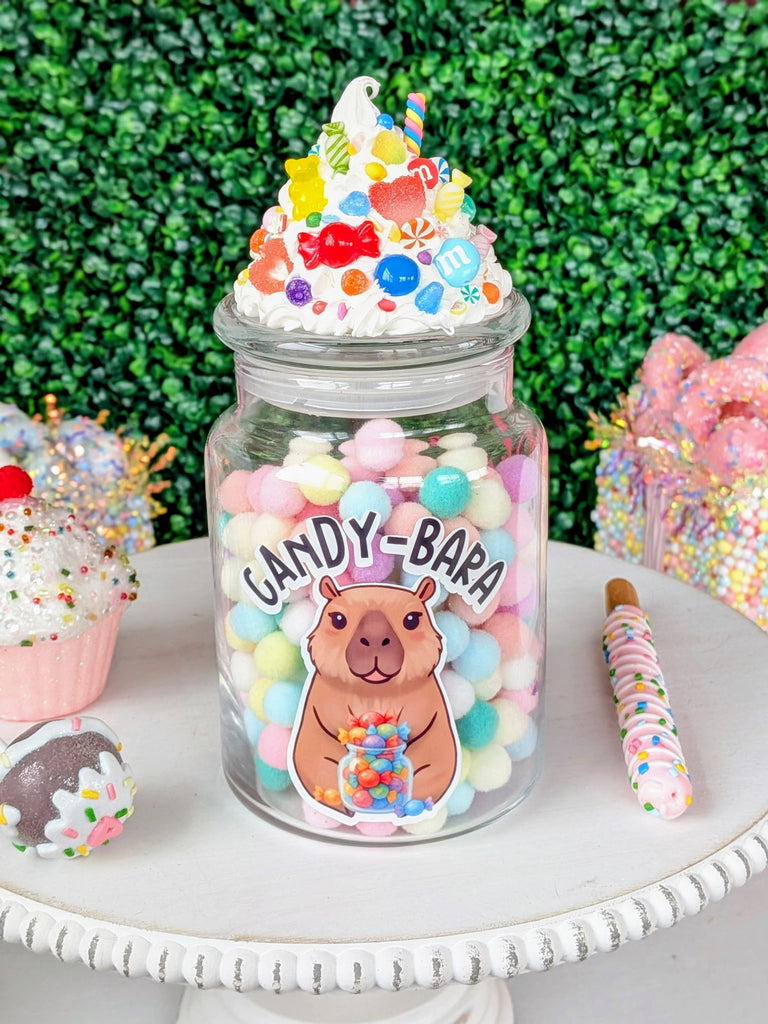Bring a touch of sugar-coated decor with this capybara candy jar! Adorned with a whipped cream topper and faux candies.