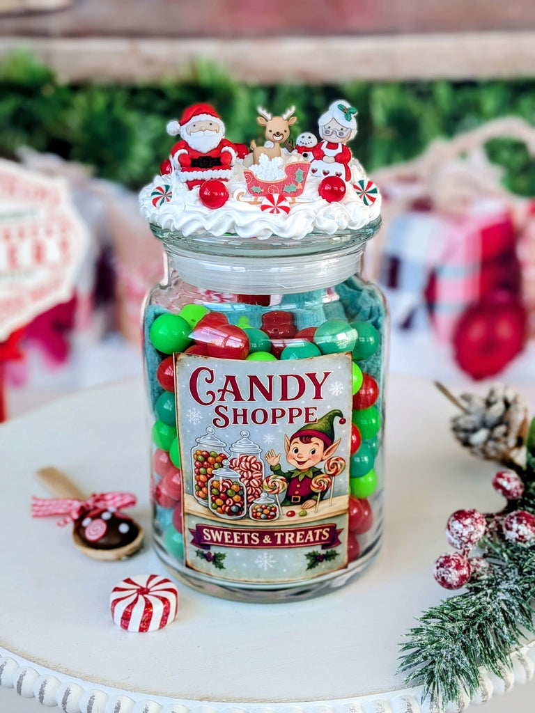 This Elf Themed candy jar is a perfect Santa decor. Fun Candy Jar! A treat office Candy Jar a perfect sweet jar!